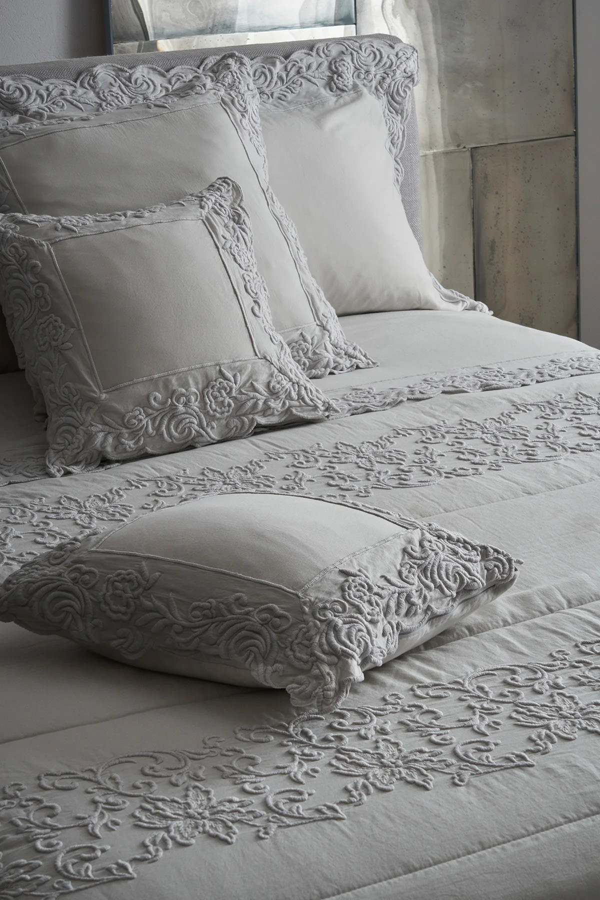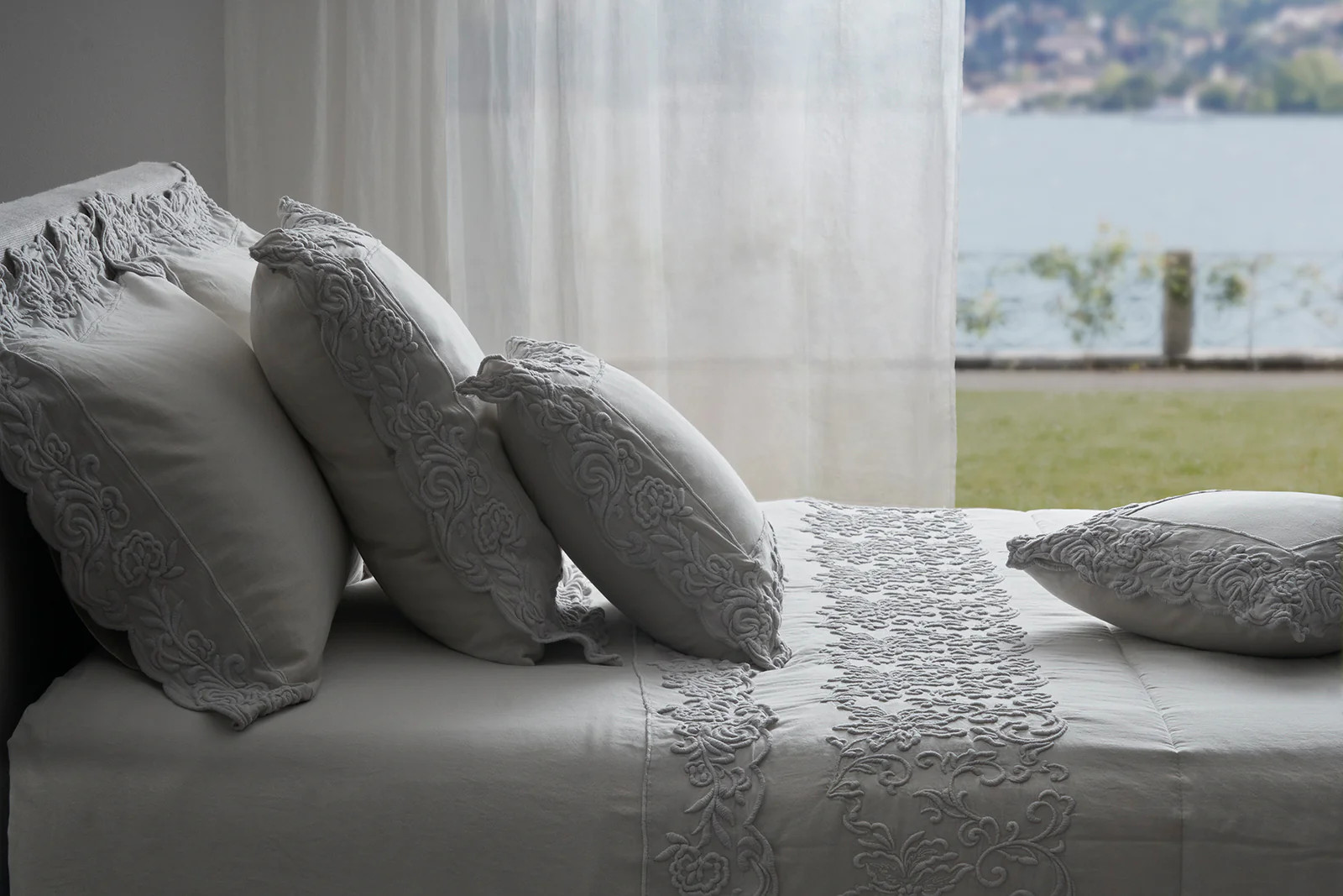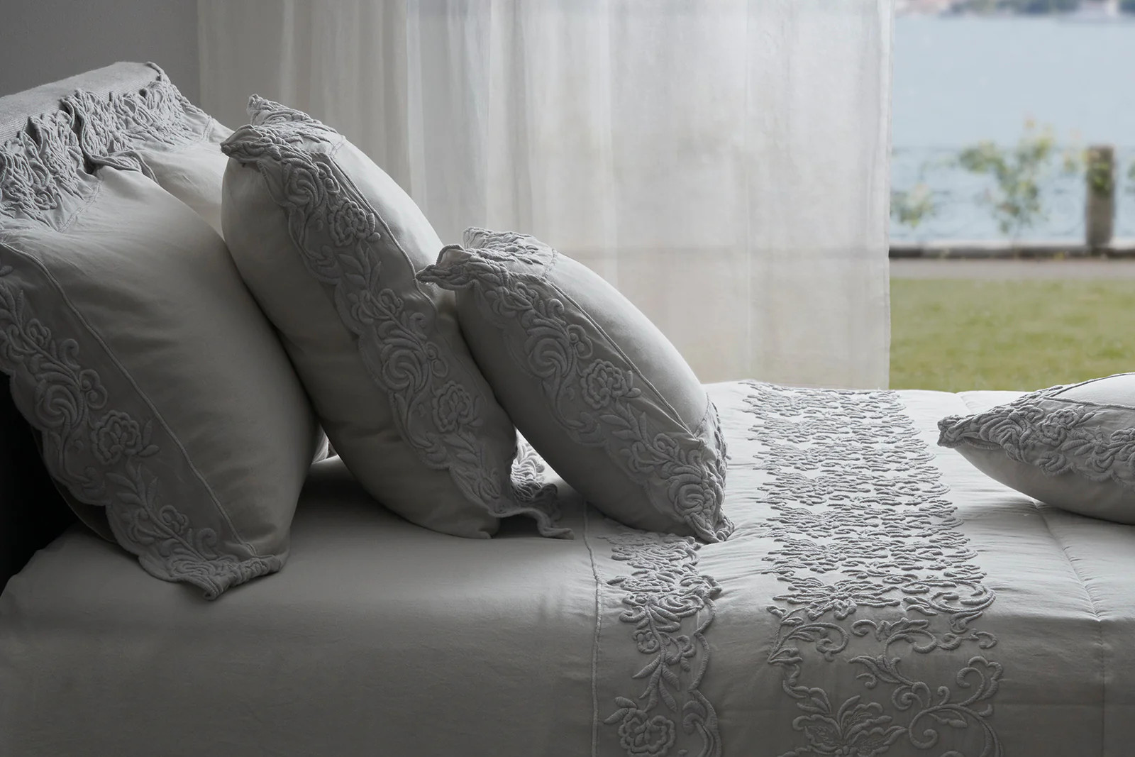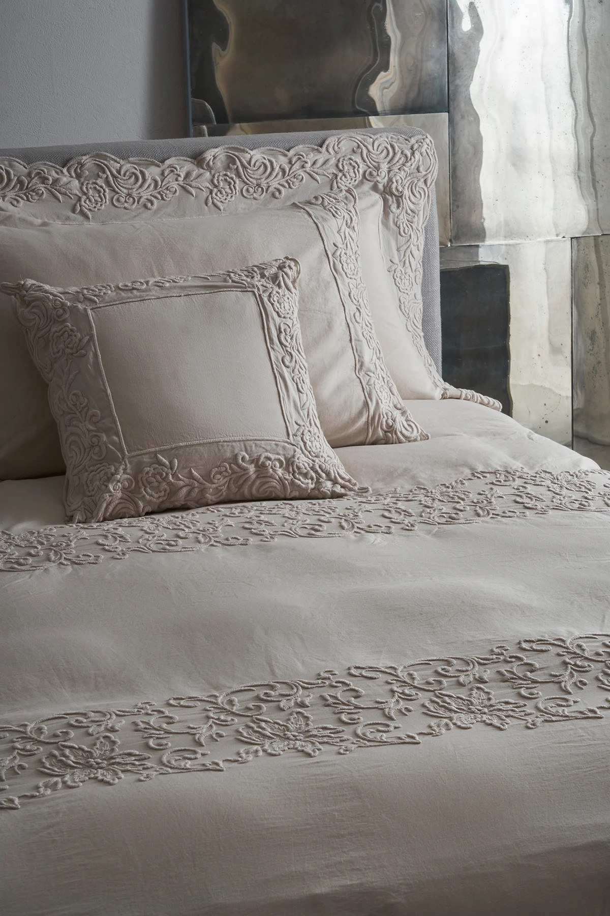 Set van 2 slopen van katoensatijn met 3 volants in broderie.